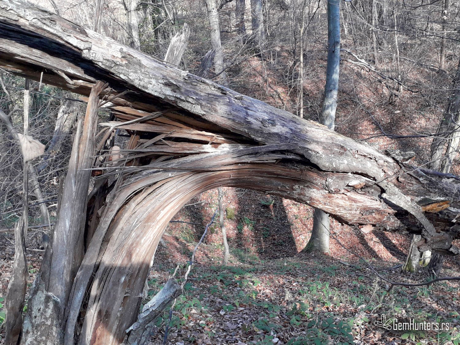 Iz udoline staza se penje naviše, pružajući pogled na jaruge potoka koji ožive kada krenu jake kiše ili počne da se topi sneg. Liče mi na škrge kroz koje planina diše. Jedan izvor, pa još jedan… Kako smo se penjale sve više, sve manje je na drveću bilo lišća, a i ono koje je ostalo bilo je sasvim suvo. Samo se bukva zlatila i dalje pojedinim stablima, ona jako dugo zadrži svoje prelepe zlatno-rumene listove. Vetar se i dalje čuo visoko u krošnjama, mi ga ni na licu ni na rukama nismo osećale.